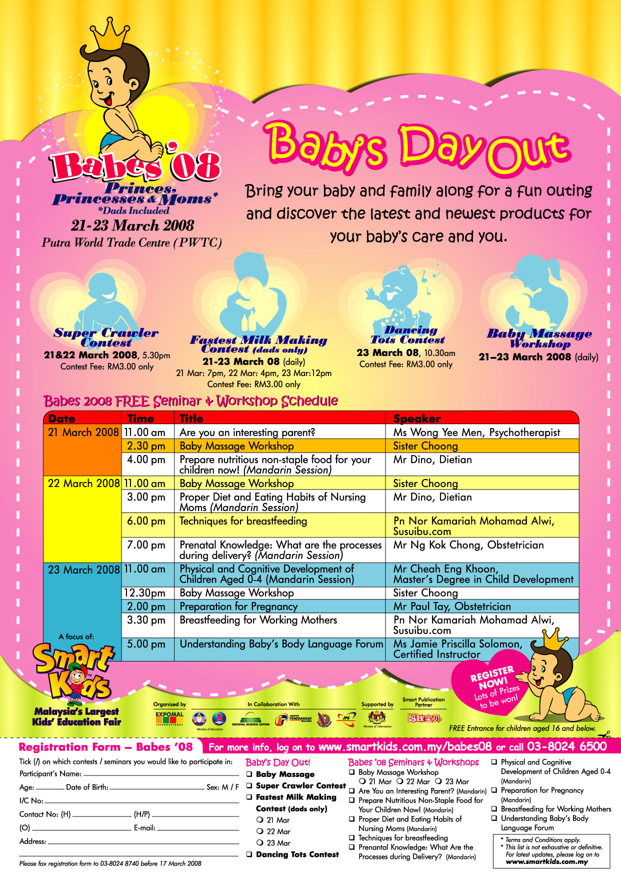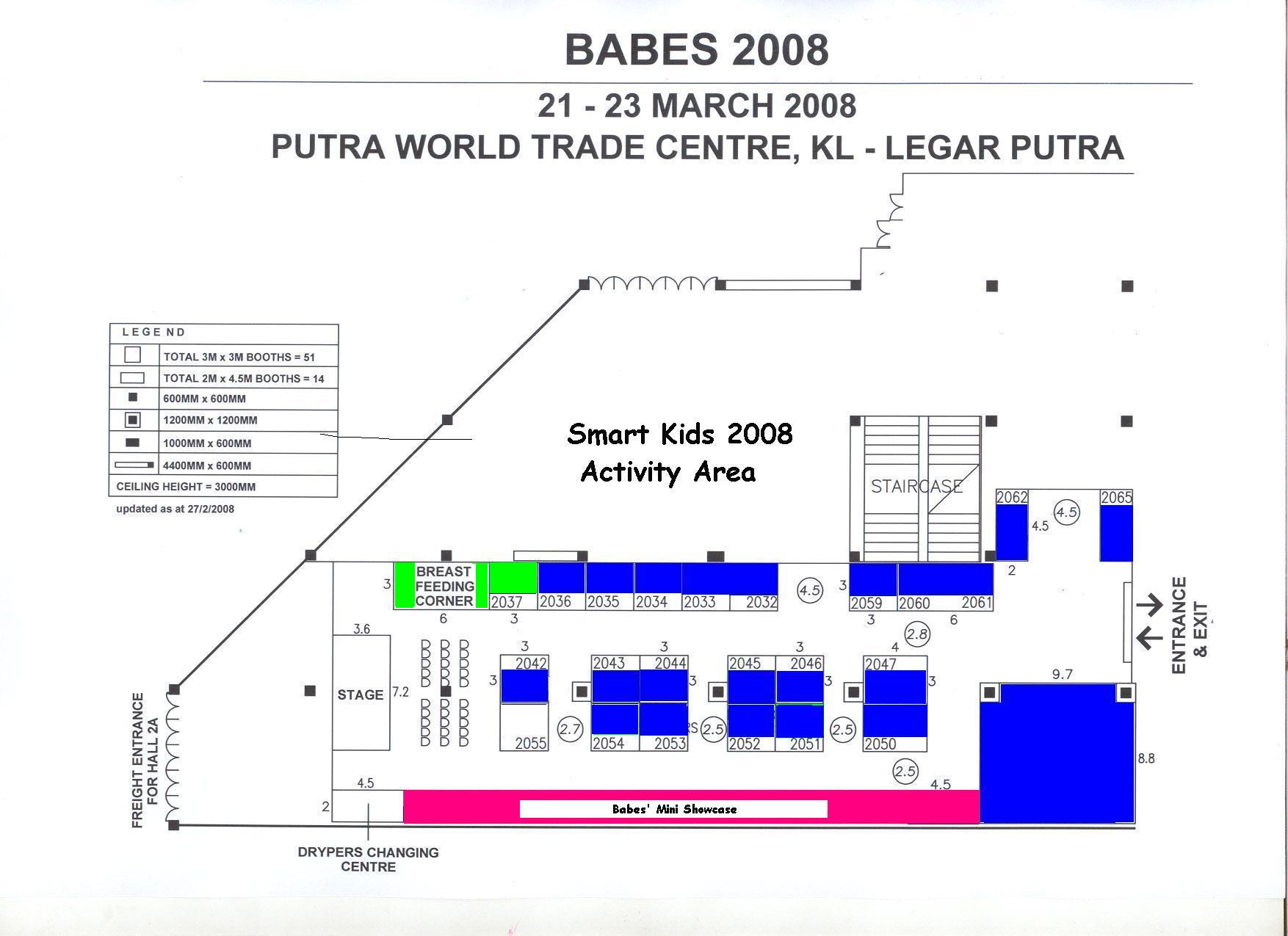 Pada 21 hingga 23 Mac, 2008 SusuIbu.com akan menyertai ekspo Babes’08 bersempena Smart Kids’08 di Putra World Trade Centre (PWTC). Lawati gerai SusuIbu.com bernombor 2037 bersebelahan dengan ‘Breastfeeding Corner’. Pelbagai program menarik boleh diikuti sepanjang tempoh ekspo! Orang ramai serta bakal ibu dan bapa dijemput datang beramai-ramai menimba ilmu serta memeriahkan suasana!Peta ke Gerai SusuIbu.com, 2037 dan Breastfeeding Corner